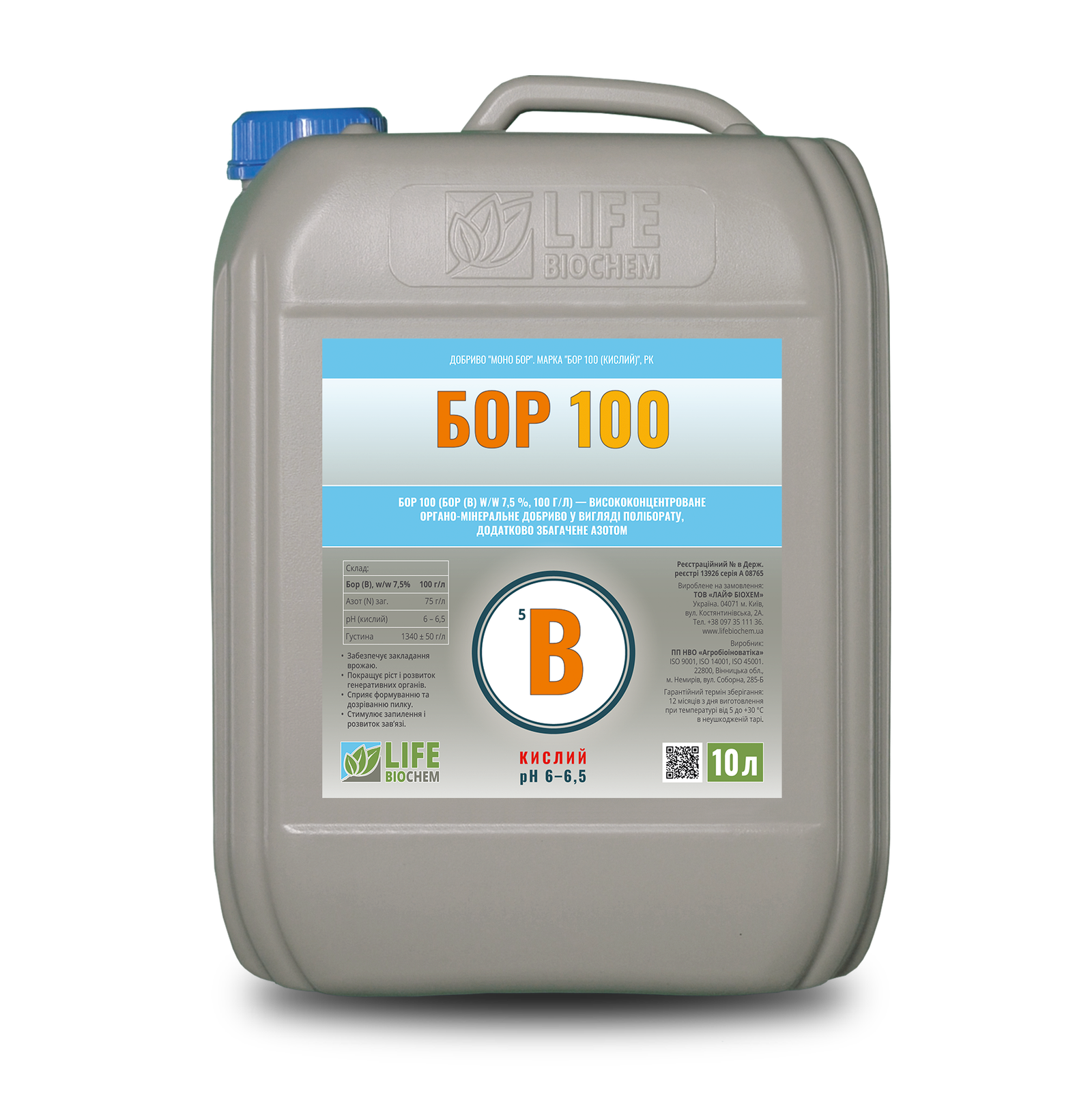 • Бор (B) — 7,5 % (100 г/л)