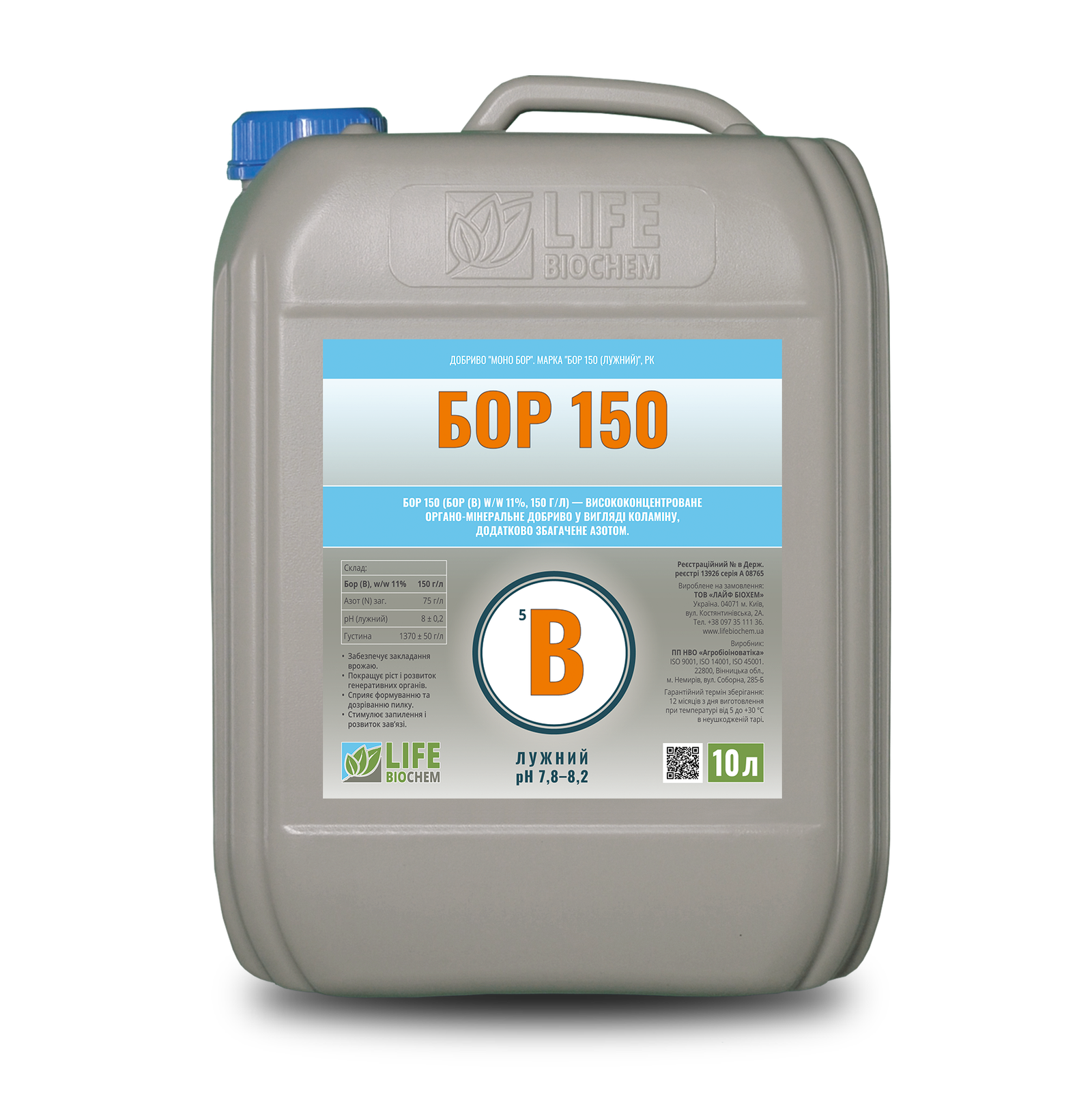 • Бор (B) — 11 % (150 г/л)