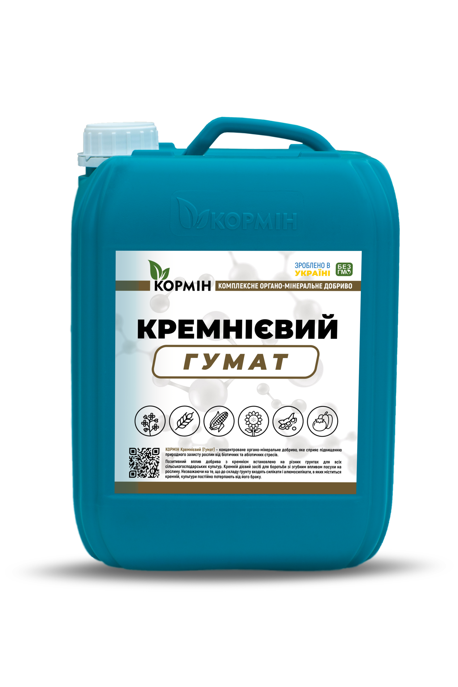 КОРМІН КРЕМНІЄВИЙ ГУМАТ — концентроване органо-мінеральне добриво для захисту рослин від біотичних та абіотичних стресів, створене на основі кремнію, гумінових і фульвових кислот та калію. Призначене для позакореневого підживлення сільськогосподарських культур у критичні фази розвитку, особливо в умовах посухи та високих температур.