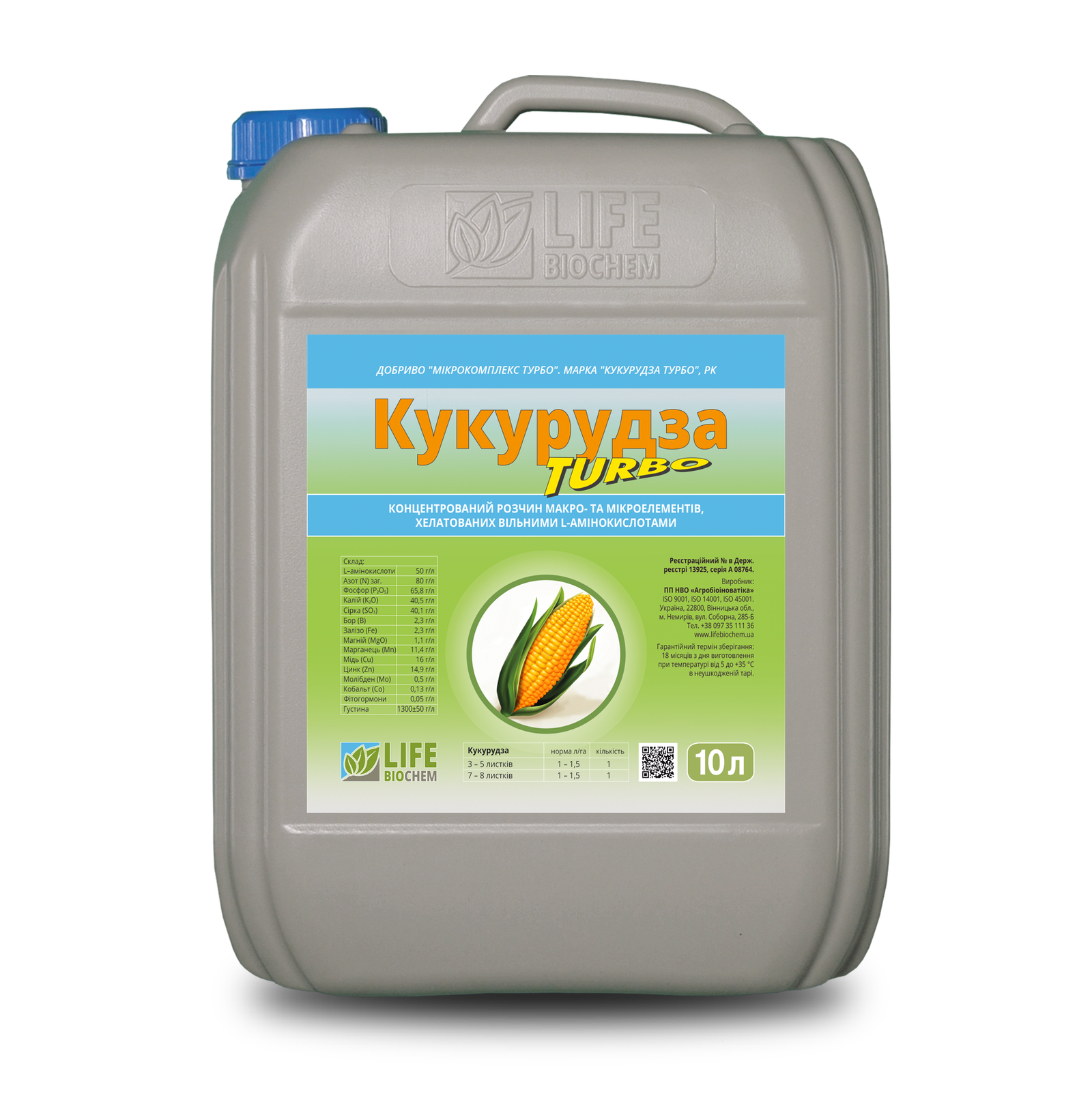 Кукурудза TURBO — концентрований розчин макро- та мікроелементів, хелатованих вільними L-амінокислотами, спеціально розроблений для живлення кукурудзи.